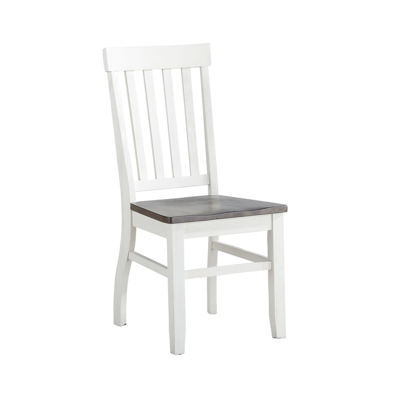 Caylie is modern farmhouse dining in a package sure to fit comfortably in any space in your living area. Two-tone ivory and driftwood finish pairs beautifully with wooden schoolhouse chairs scooped for a more comfortable seat. The clean lines combine with traditional elements to create a transitional style that will fit well in virtually any decor.