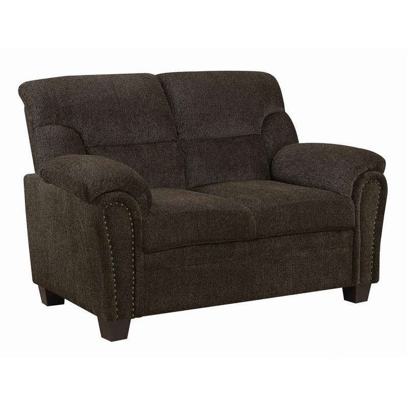 Clementine Upholstered Loveseat with Nailhead Trim Brown