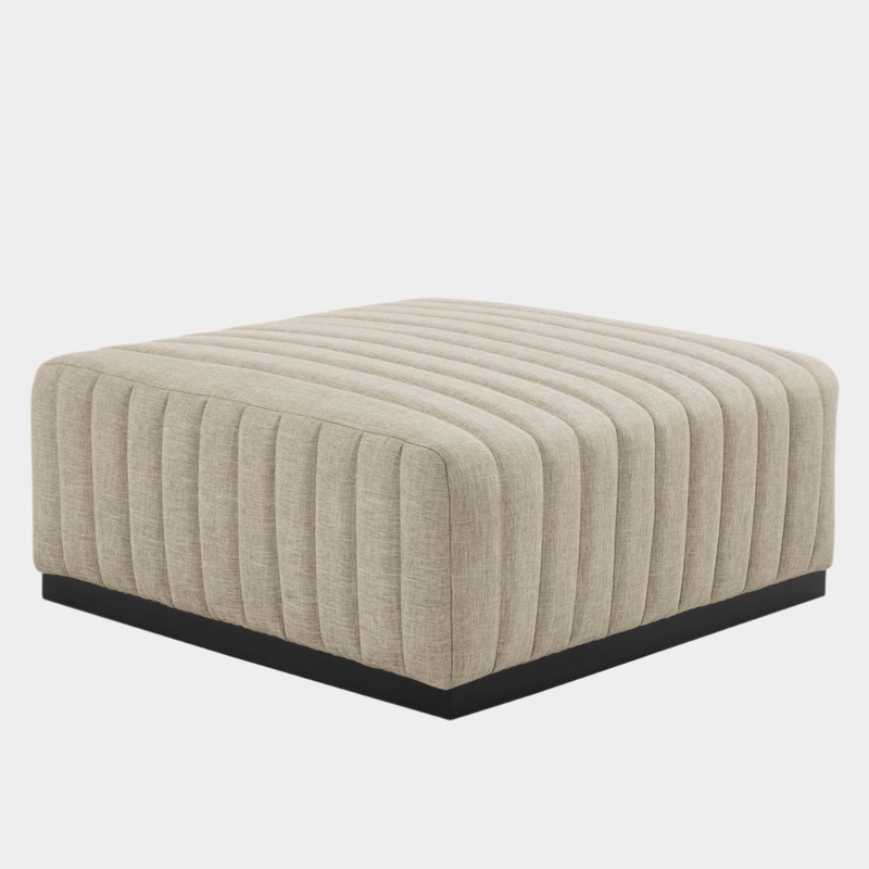 Modern appeal surrounds the Conjure Channel Tufted Upholstered Fabric Ottoman. Soft and durable fabric upholstery covers dense foam padding and an individually wrapped spring coil system for a supportive living room ottoman that will become the go-to lounge spot for family and friends. Vertical channel tufting and subtle French piping adds depth to this vintage inspired sectional piece that effortlessly becomes the focal point in your living room. Solidly constructed from wood and plywood, this ottoman features non-marking foot caps and boasts a matte black base. Versatile and elegant, this sectional sofa piece is ideally suited for a variety of decor styles in your living room, lounge, or home office. Weight Capacity: 331 lbs.