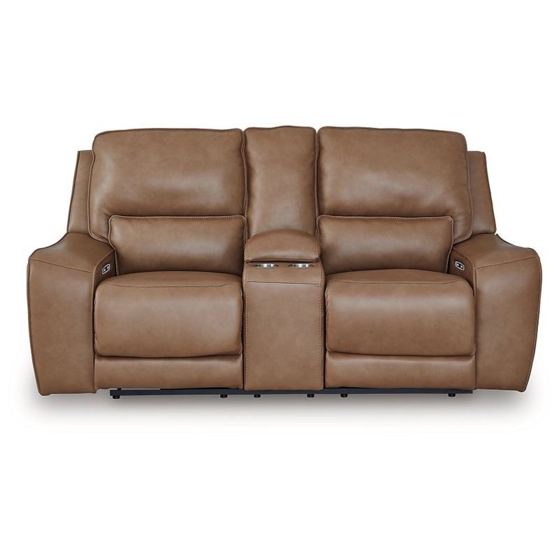 Live and lounge luxuriously. This power reclining loveseat brings an ultra-stylish flair to your homes central hub. Its seating area is wrapped in top-grain leather in a rich caramel coloration, giving you a trend-right look made all the better with high-q