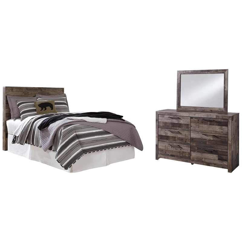 Derekson Full Panel Headboard with Mirrored Dresser