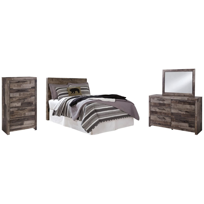 Derekson Full Panel Headboard with Mirrored Dresser and Chest