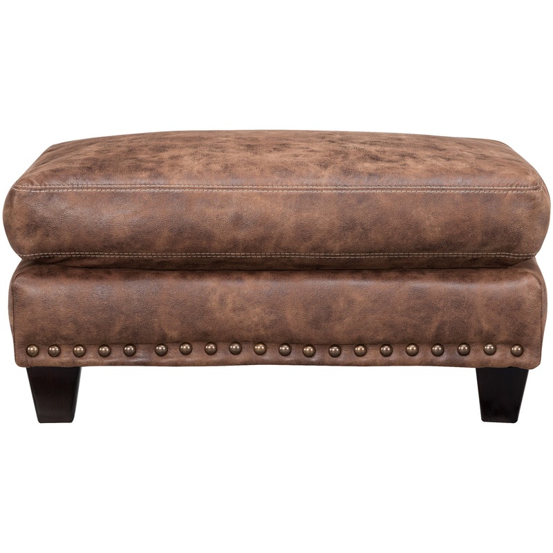 The Dexter ottoman gives you the casual yet traditional look you want at the price you can afford. This comfy ottoman will make you look twicethe distressed, marbled finish and antique brass nail-head trim along the bottom show off a handsome leather piece