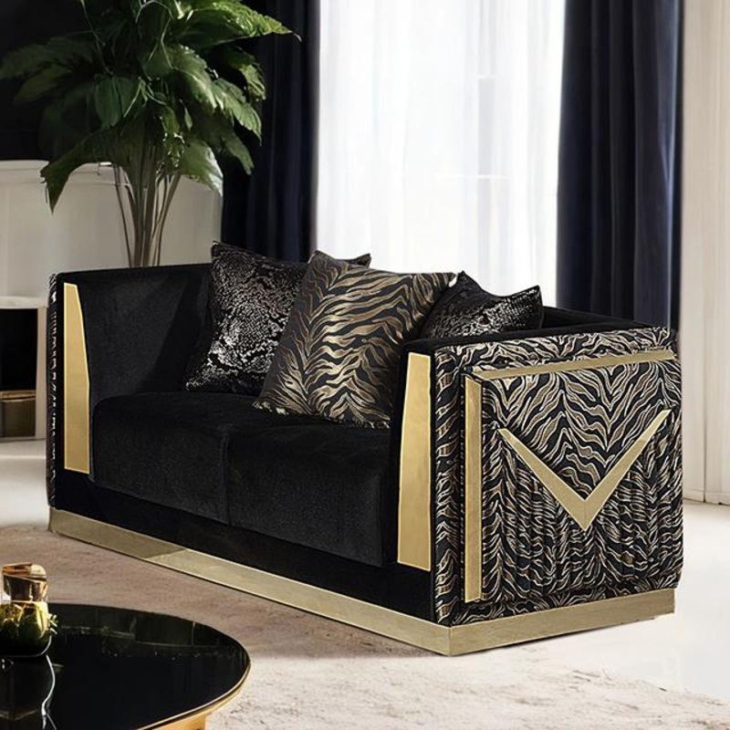 Glam Black Velvet/Gold Solid Wood, Fabric, Stainless Steel, Others Zebra Print Gold Trim Track Arms 100% Polyester Fabric Tight Back Attached Cushion Stainless Steel Base