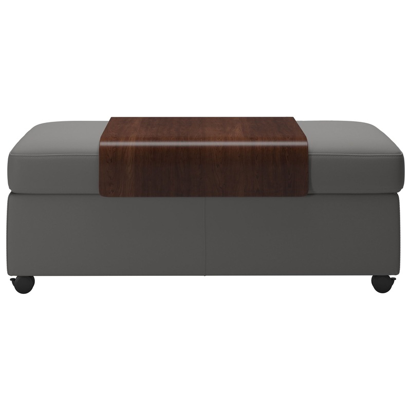 The StresslessDouble Ottoman with Table offers great comfort with plenty of leg room for two, plus ample storage space inside. This ottoman includes a removable table top that fits snugly over the ottoman, creating a convenient and space-saving refreshment table when needed.