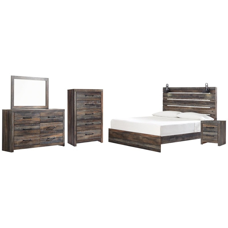 | Details | B211-46: Made of engineered wood (MDF/particleboard) and decorative laminate, Brown rustic finish with burnt orange and teal accents in a replicated wood grain with authentic touch, Large-scale hardware with dark finish, 5 smooth-gliding drawers, Drawer interiors are lined with a faux linen laminate for a clean, finished look, Includes tipover restraint device, Small Space Solution, Safety is a top priority, clothing storage units are designed to meet the most current standard for stability, ASTM F 2057 (ASTM International), Drawers extend out to accommodate maximum access to drawer interior while maintaining safety, B211-92: Made of engineered wood (MDF/particleboard) and decorative laminate, Brown rustic finish with burnt orange and teal accents in a replicated wood grain with authentic touch, 2 smooth-gliding drawers, Drawer interiors are lined with a faux linen laminate for a clean, finished look, Large-scale hardware with dark finish, 2 slim-profile USB-C charging stations, Power cord included; UL Listed, Small Space Solution, B211B1: Made of engineered wood (MDF/particleboard) and decorative laminate, Brown rustic finish with burnt orange and teal accents in a replicated wood grain with authentic touch, 6 smooth-gliding drawers, Drawers lined with faux linen laminate, Dark-tone industrial hardware, Mirror attaches to back of dresser, Assembly required, Includes tipover restraint device, B211B14: Includes headboard, footboard and rails, Made of engineered wood (MDF/particleboard) and decorative laminate, Brown rustic finish with burnt orange and teal accents in a replicated wood grain with authentic touch, 2 decorative sconce LED lights, each runs on 3AA batteries, 2 USB charging ports, Power cord included; UL Listed, Foundation/box spring required, sold separately, Mattress available, sold separately, Assembly required, Bed is compatible with an adjustable base, |