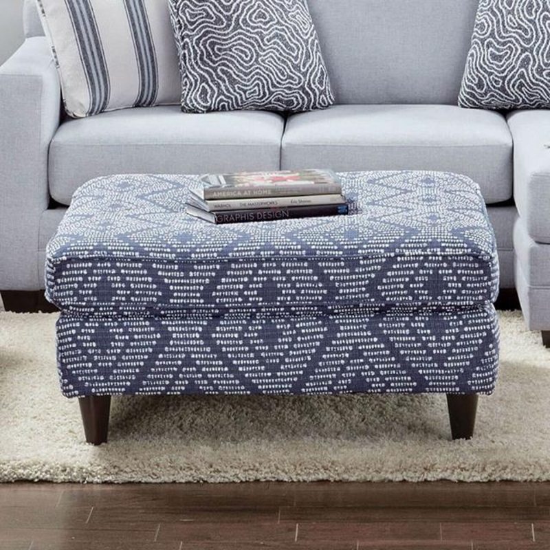 Enjoy a breath of fresh air in your living space with this stylish ottoman. With tapered block legs finished in espresso, the pristine navy base color helps emphasize the stylish patterns on the piece.