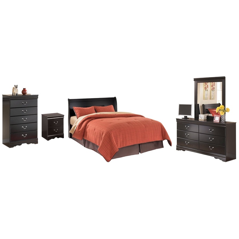 This bedroom set with sleigh headboard, dresser/mirror, chest and nightstand is the epitome of traditional decor. Louis Philippe-style moulding dates back to the mid-19th century when furnishings were lavish yet somewhat simple. Luxe finish adds a slightly modern touch. Smooth-glide drawers beautifully accommodate your wardrobe.