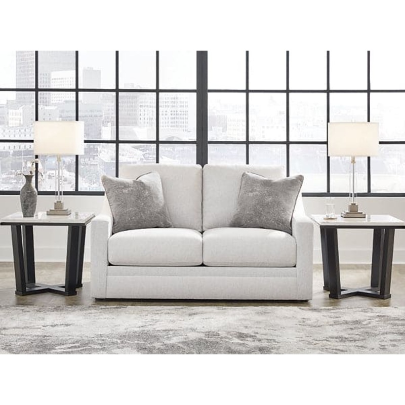 Clean lines and a streamlined silhouette define the architectural attitude of this loveseat. Textured accent pillows in complementary colors add subtle contrast. The loveseat's plush reversible cushions beckon you to sit down, get comfy and relax completel