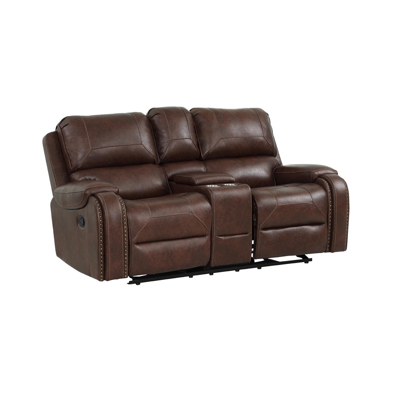 New Classic Furniture Taos Dual Recliner Glider Console Loveseat in Caramel