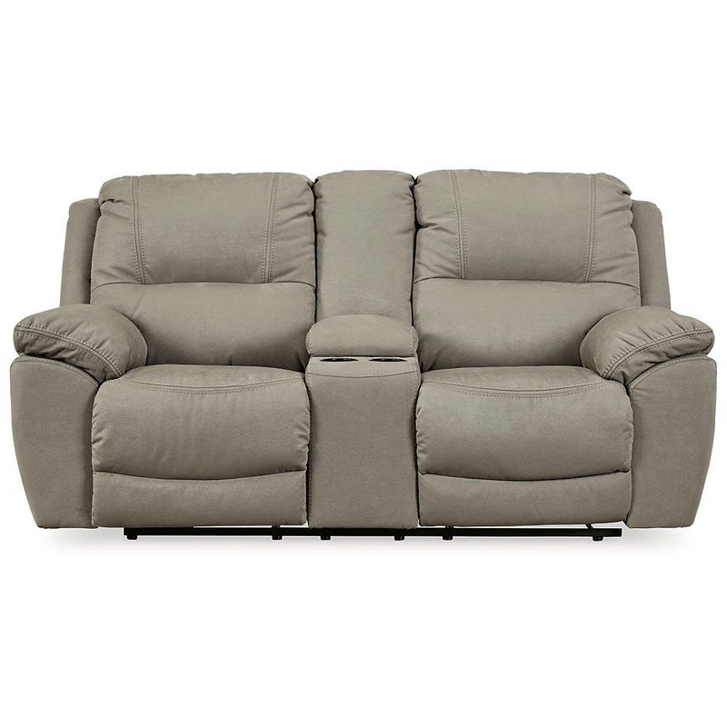 Kick back, relax, and enjoy some sports on TV with this power reclining loveseat. You will love its double stuffed pillow top arms and soft-as-suede faux leather upholstery. The family-friendly dark gray color and creative stitching add panache. Recline in infinite positions of comfort while you plug in your devices to the convenient USB charging station. This bustle back loveseat with console and cup holders will always be a win.
