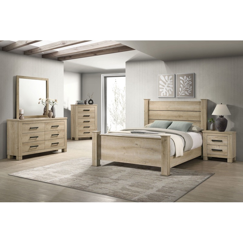 Bedroom set with a cohesive rustic design and modern touches